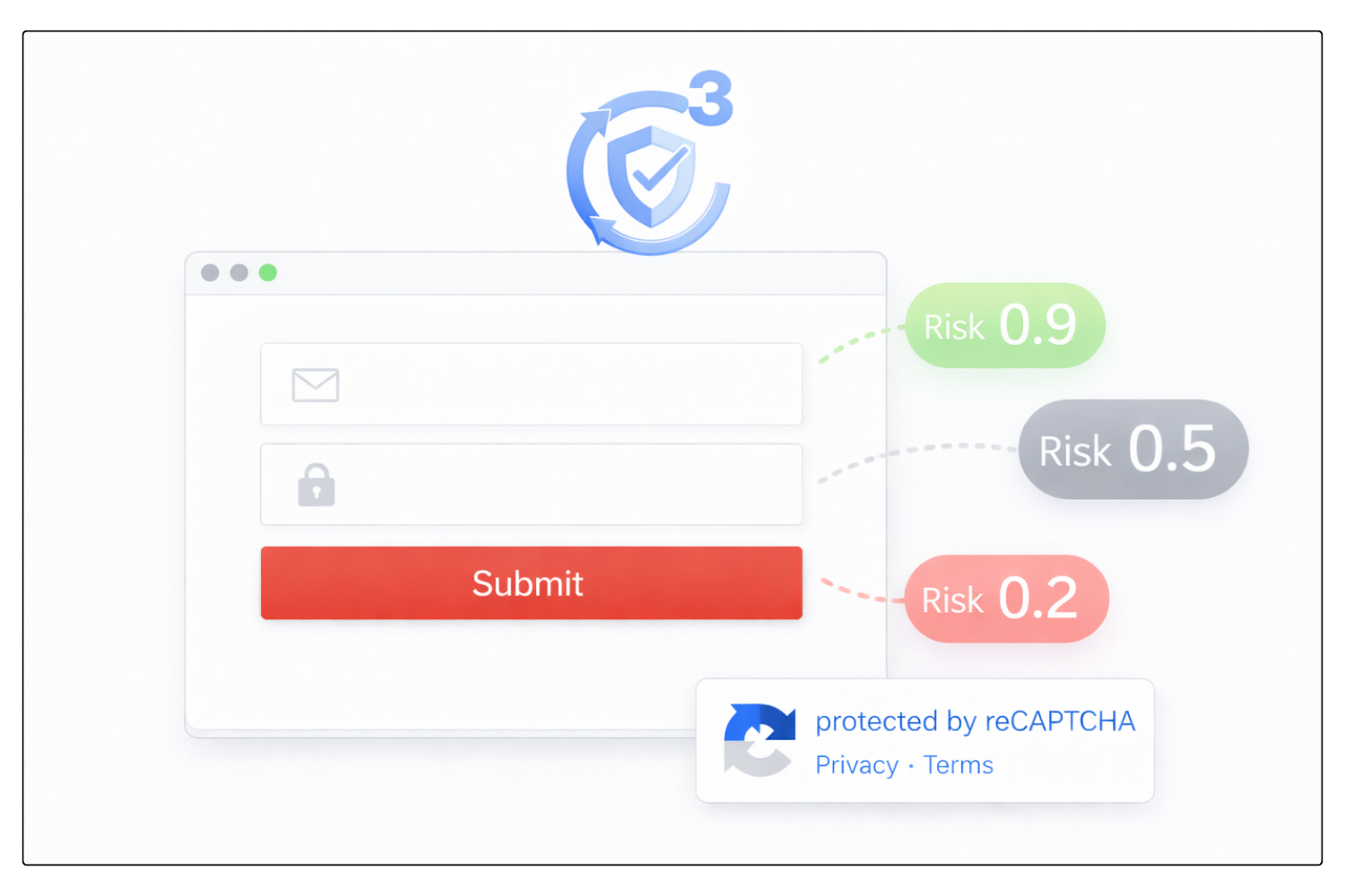 reCAPTCHA v3 Enterprise is Google’s enterprise-grade score-based bot detection system designed to protect websites, applications, and high-value user flows from abuse, fraud, and automated activity. Unlike checkbox-based verification methods, reCAPTCHA v3 Enterprise works in the background by analyzing user behavior and assigning a risk score to each interaction. This allows websites to evaluate requests silently and decide whether to allow, block, or further verify a session without interrupting the user experience.